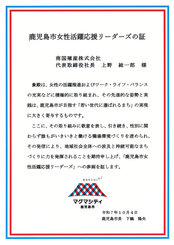 当社は「鹿児島市女性活躍応援リーダーズ」へ参画いたします。